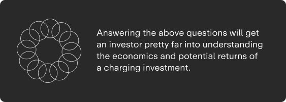 Answering the above questions will get an investor pretty far into understanding the economics and potential returns of a charging investment.